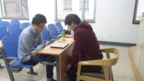 在下午两点开始的象棋比赛中,郑晓雄与许彬彬经过重重角逐,坐在了决赛的博弈现场,比赛过程十分精彩,他们时而紧皱眉头,时而展眉轻笑。棋子的起伏轻落,无不体现着比赛双方的心智。最终,许彬彬抓住了对方的进攻漏洞,一举拿下了象棋的冠军。